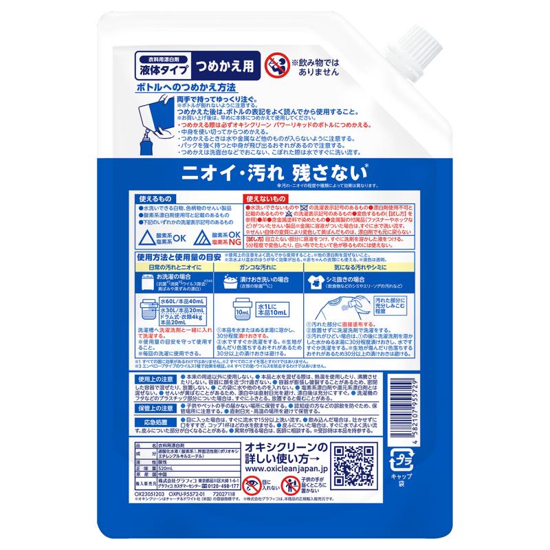 ●液体だから冷水でも溶け残らず色柄物にも使える、さらに進化したオキシクリーンです。