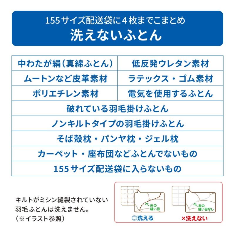 ・155サイズ配送袋に入らないものは、洗えません。