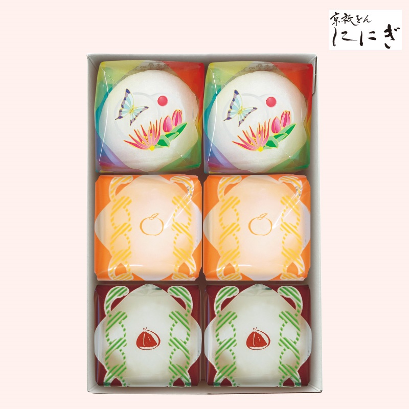 祇園ぽっちり×2、甘夏の福×2、抹茶クリームと渋皮くりの福×2 【特定原材料:小麦、乳】