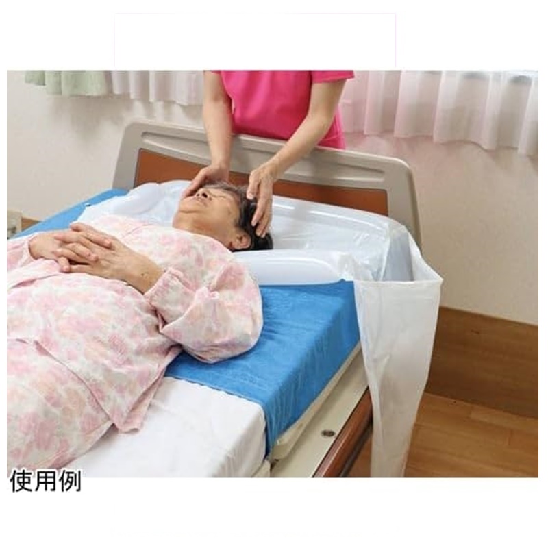 お子様からお年寄りまで、ベッドの上で寝ながら髪が洗えます。