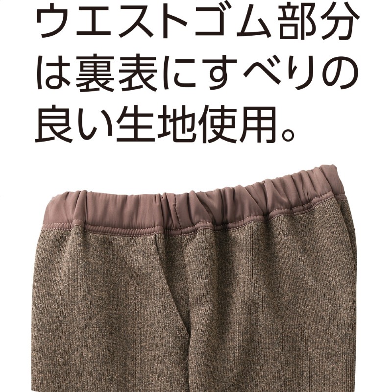 ウエストゴム部分が表裏ともにすべる生地なので、巻き込まずに一人で履きやすい。