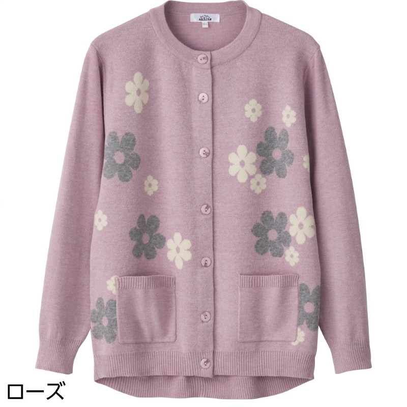 もちもちニット斜め釦ホールカーディガン