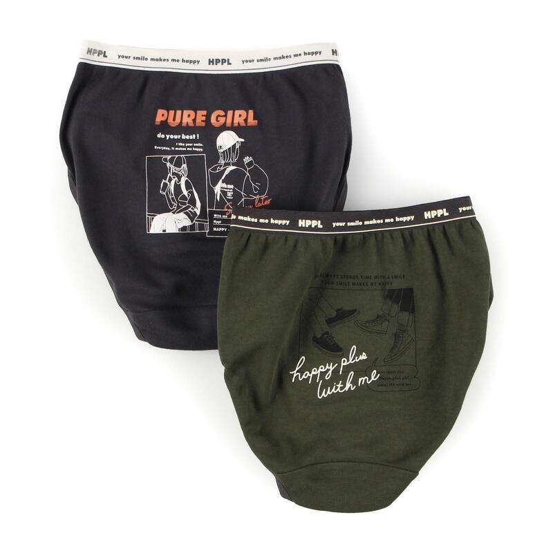 バックプリントの大きめイラストプリントが可愛い2枚組ショーツ。