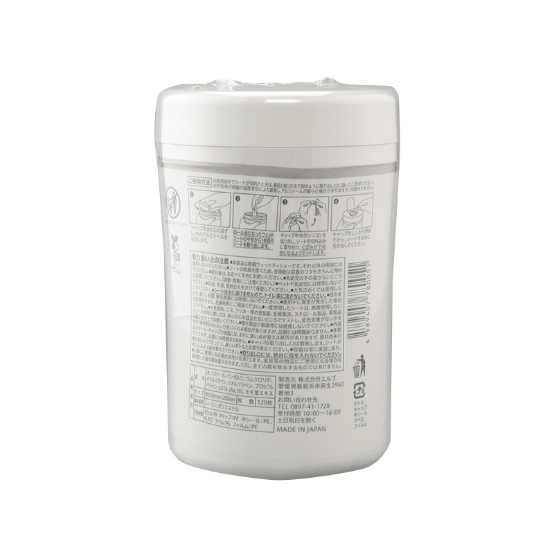 除菌ができるボトルタイプのウェットティシュー本体。