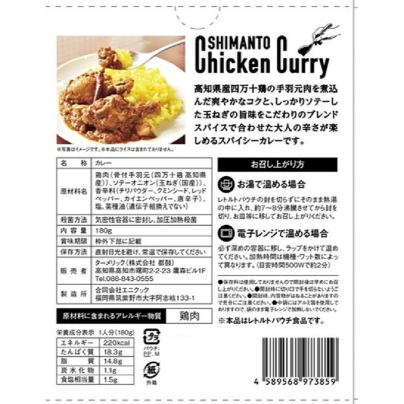 高知県産の四万十鶏の手羽元を2本使用した爽やかな大人の辛さのカレーです。