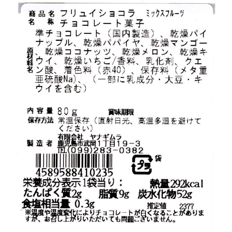 ドライフルーツのミックスフルーツにビターチョコをかけ、酸味と甘みの絶妙なバランスに仕上げました。