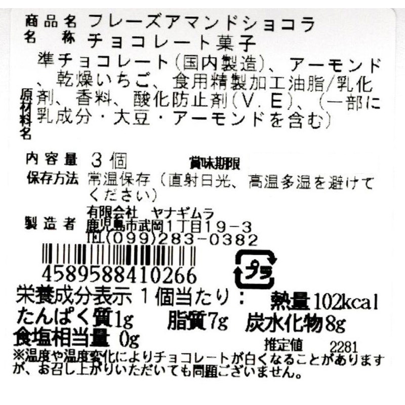 アーモンド×苺風味のホワイトチョコレートの3個入