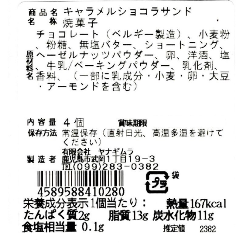 キャラメル風味のチョコレートをクッキーでサンドした4個入のセット