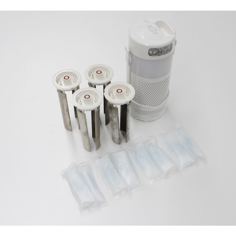 本体、マグネシウム棒4本、塩入り袋8袋、取扱説明書/保証書