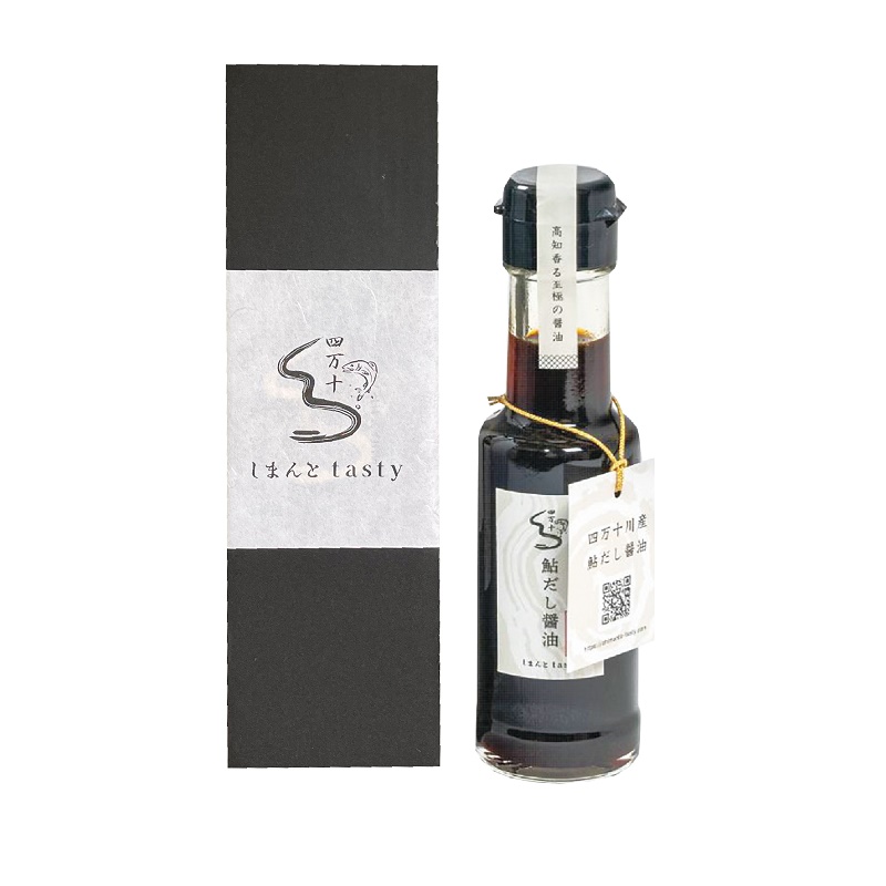 四万十川で冬に捕れた脂身少ない子持ち鮎を丁寧に乾燥し旨味を凝縮させ、厳選醤油に漬け込んだ濃厚な出汁醤油と取り出された鮎を