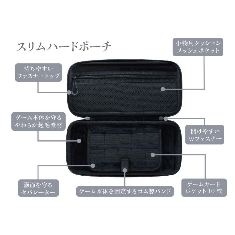 セット内容はスリムハードポーチ1個、光沢ガラスフィルム1枚、ジョイコン2用アナログスティックカバー2個、