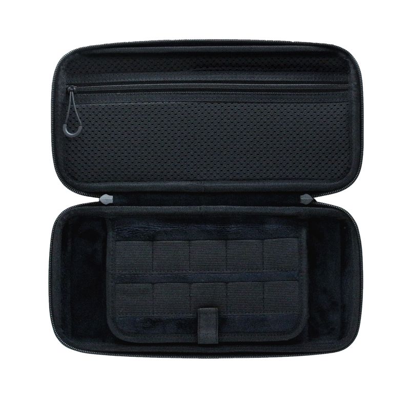 内側はゲーム機本体を守るフワフワ起毛素材。いろいろ小物が入るクッションメッシュポケット付。