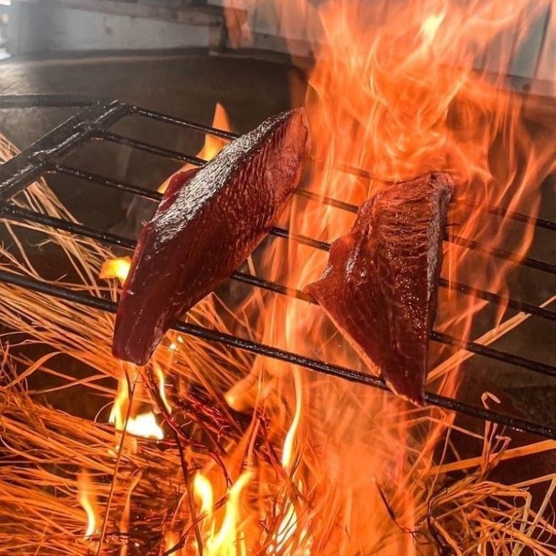 塩や酢、果汁などを効かせた特製塩ダレで味をなじませてお召し上がり頂くカツオの塩たたきです。