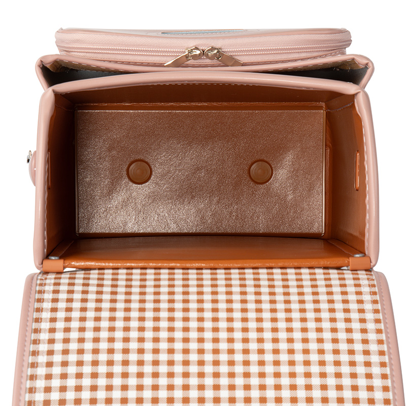 通気性に優れたスーパーブレスターを直接体に触れる肩紐裏と、背裏に採用し、クッション内の空気