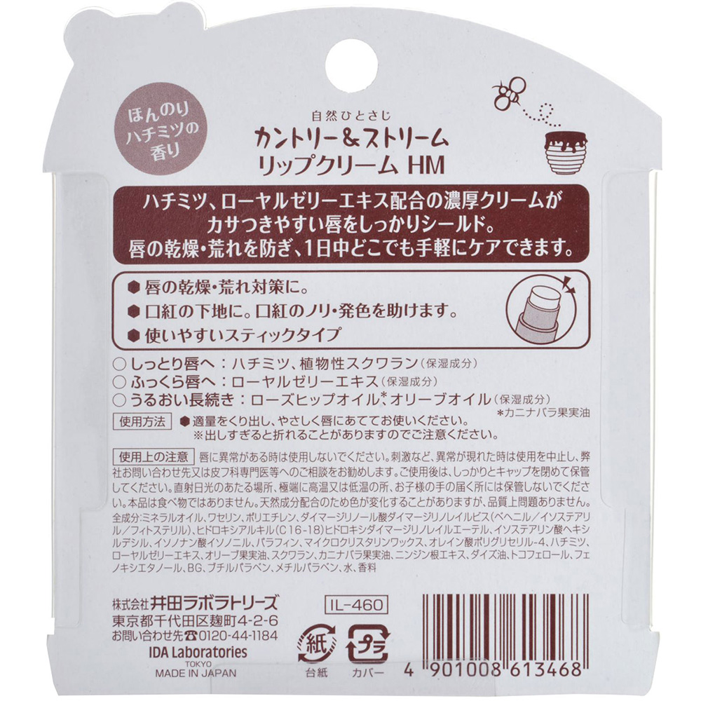・しっとり唇へ:ハチミツ、植物性スクワラン「保湿成分」