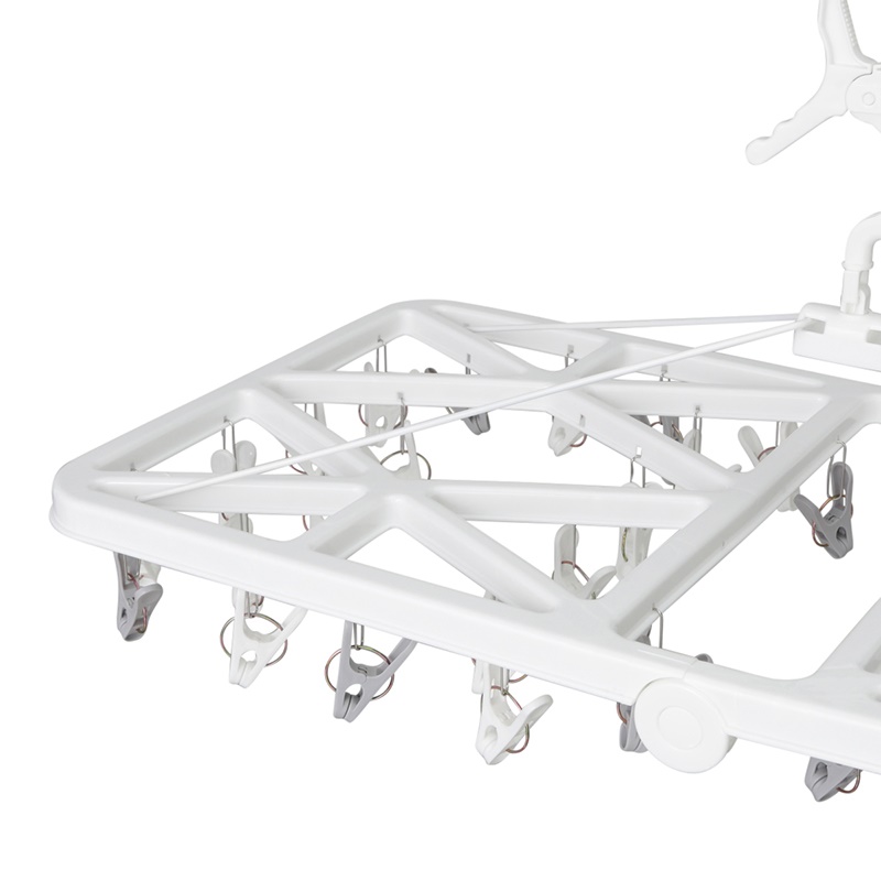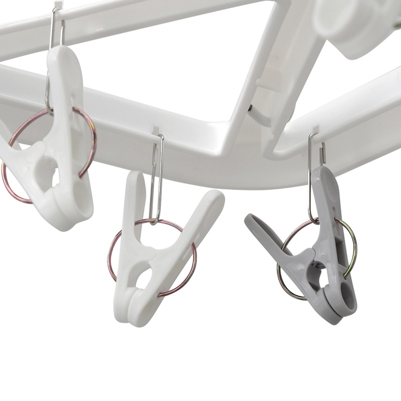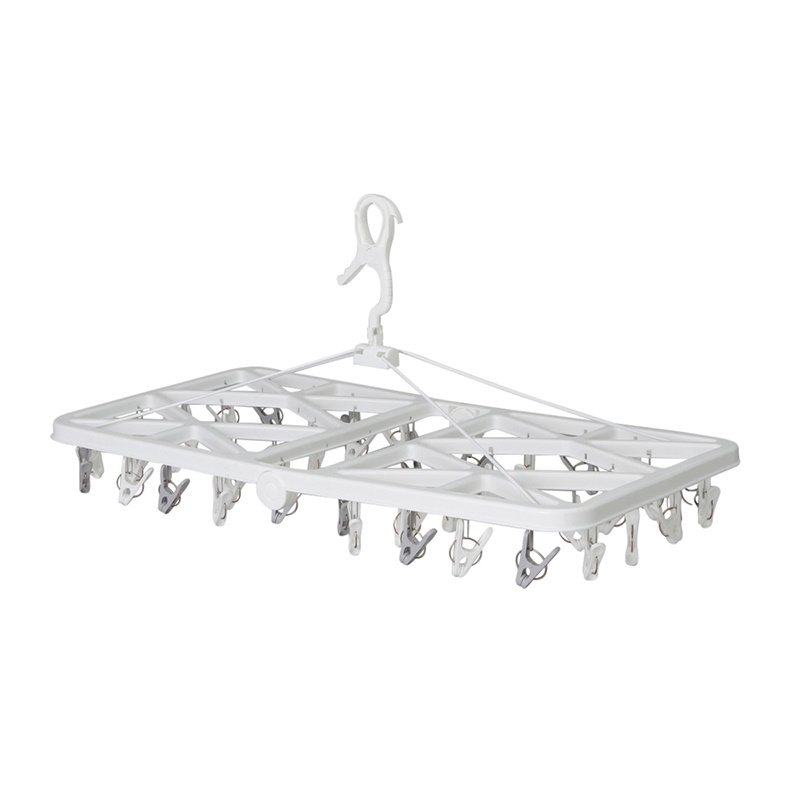 42個のピンチが付いたシンプルで使いやすい小物を干すのに適したプラスチック素材の角ハンガーです。