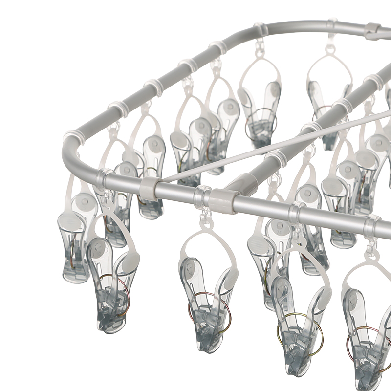 洗濯物が取り込みやすく、可動式で絡まりにくいリングピンチ。