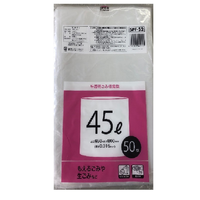 半透明ごみ収集袋45L50枚 SPF52
