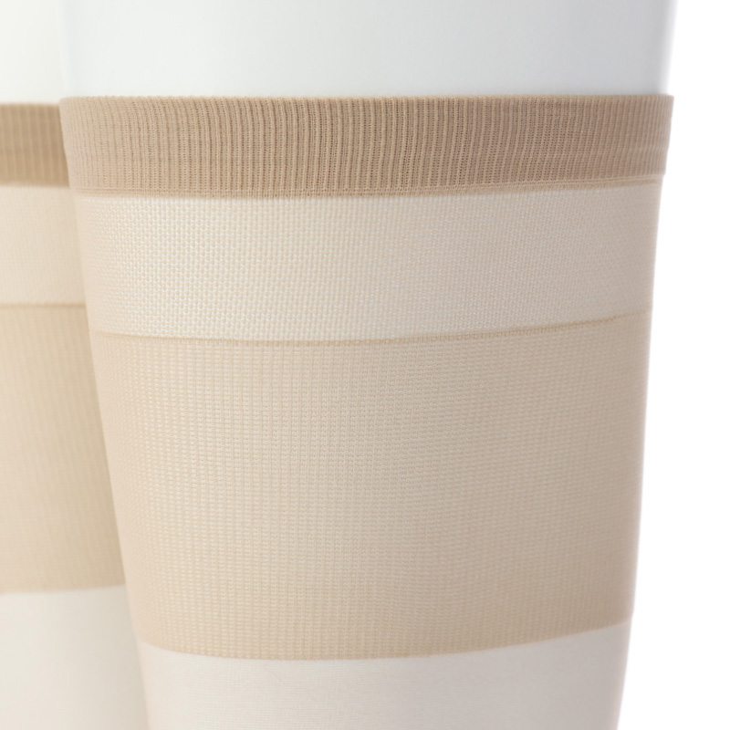 大人の肌にやさしいふともも丈のスリムライン。肌触りがソフトなクチゴムとズリ落ち防止の幅広サブバンドのダブルのサポートでくい込みんくく快適にフィットします。