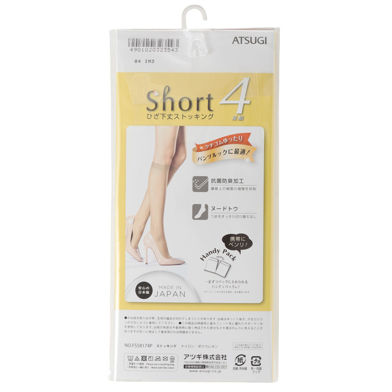 ショートストッキングひざ下丈4足組、クチゴムゆったり、、