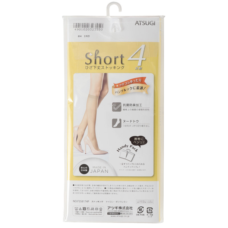 ショートストッキングひざ下丈4足組、クチゴムゆったり、、