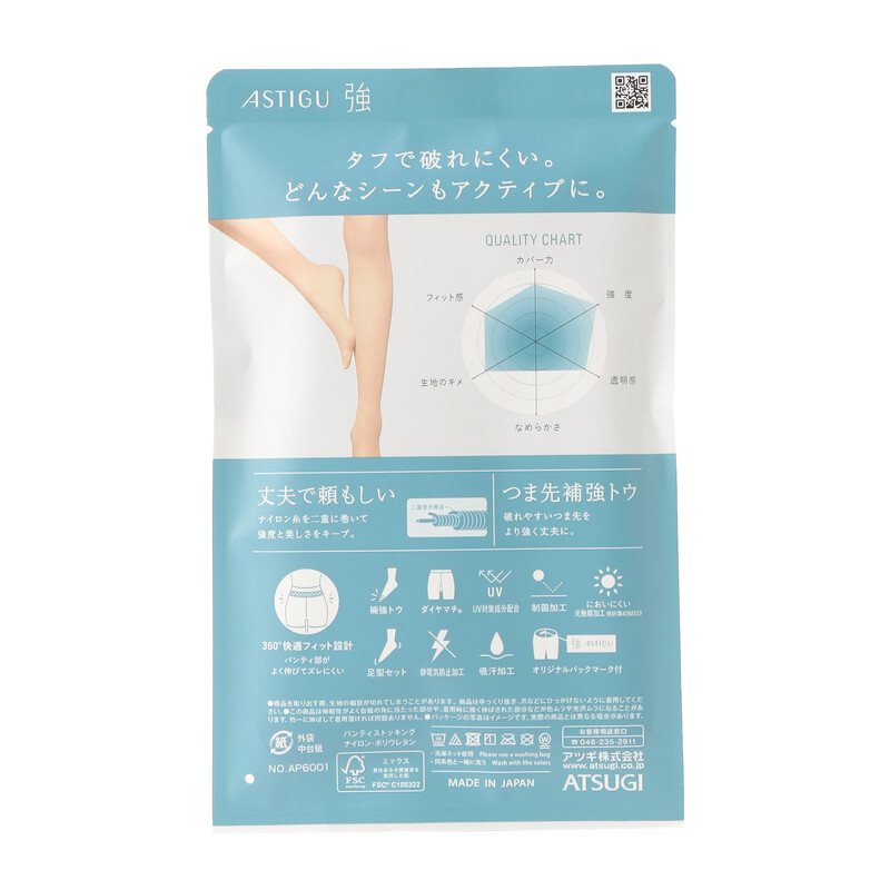 ナイロン糸を二重に巻いて強度と美しさをキープ、さらに破れやすいつま先をより強く丈夫にしたストッキングです。