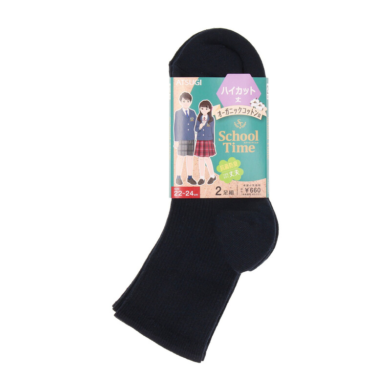 オーガニックコットンを使用したスクールソックス2足組。