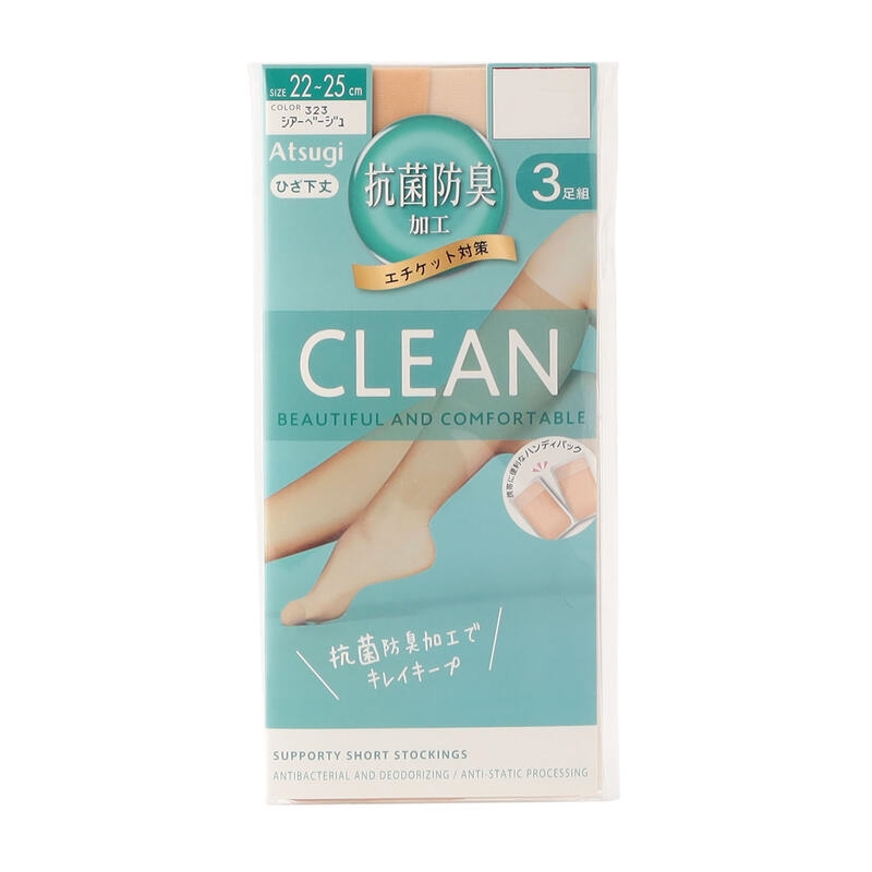 抗菌防臭加工ショートストッキングひざ下丈3足組、CLEAN、エチケット対策