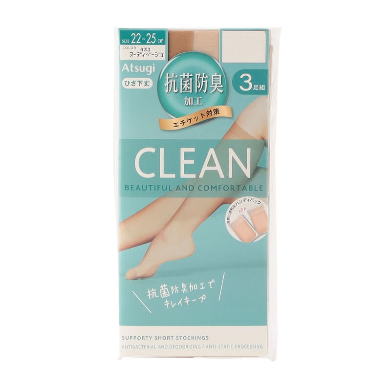 抗菌防臭加工ショートストッキングひざ下丈3足組、CLEAN、エチケット対策