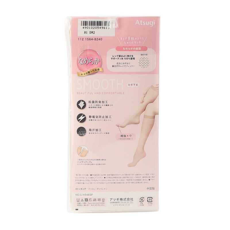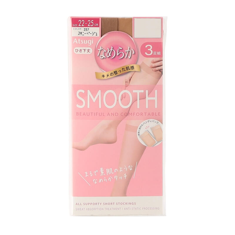 なめらかショートストッキングひざ下丈3足組、SMOOTH、キメの整った肌感