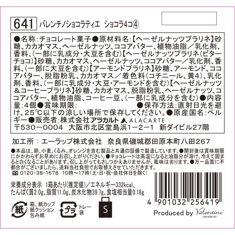 バレンチノを代表するベーシックなショコラ4粒入り。