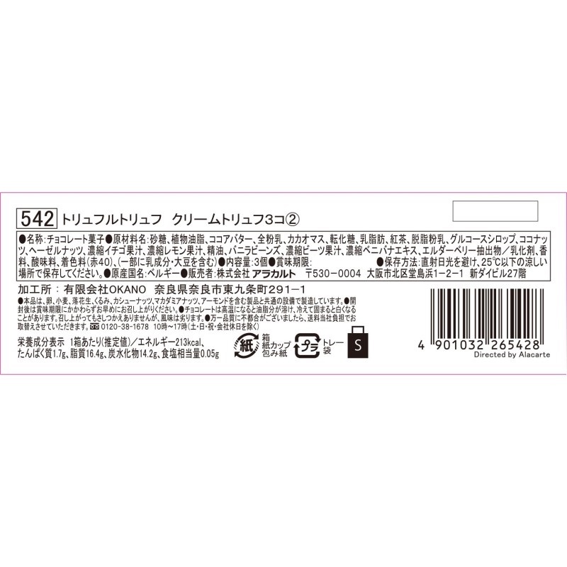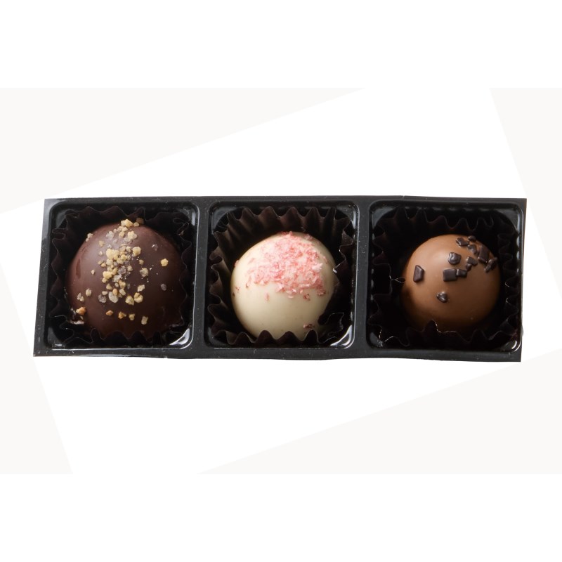 ふわっとしたとろけるクリームが入ったトリュフ3粒入り。