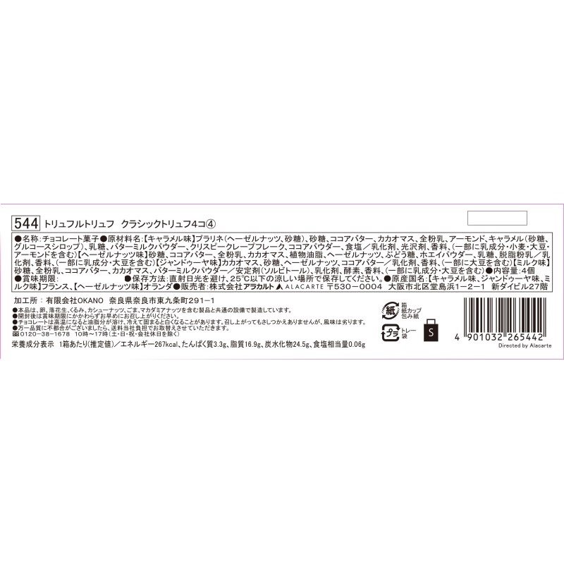 ※アレルギー表示およびアルコール分については、パッケージの裏面画像をご確認頂けますようお願い致します。