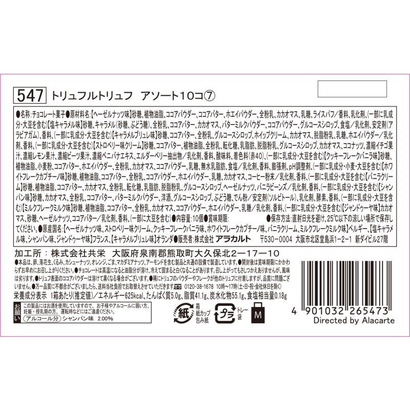 ヨーロッパ産トリュフのアソート10粒。