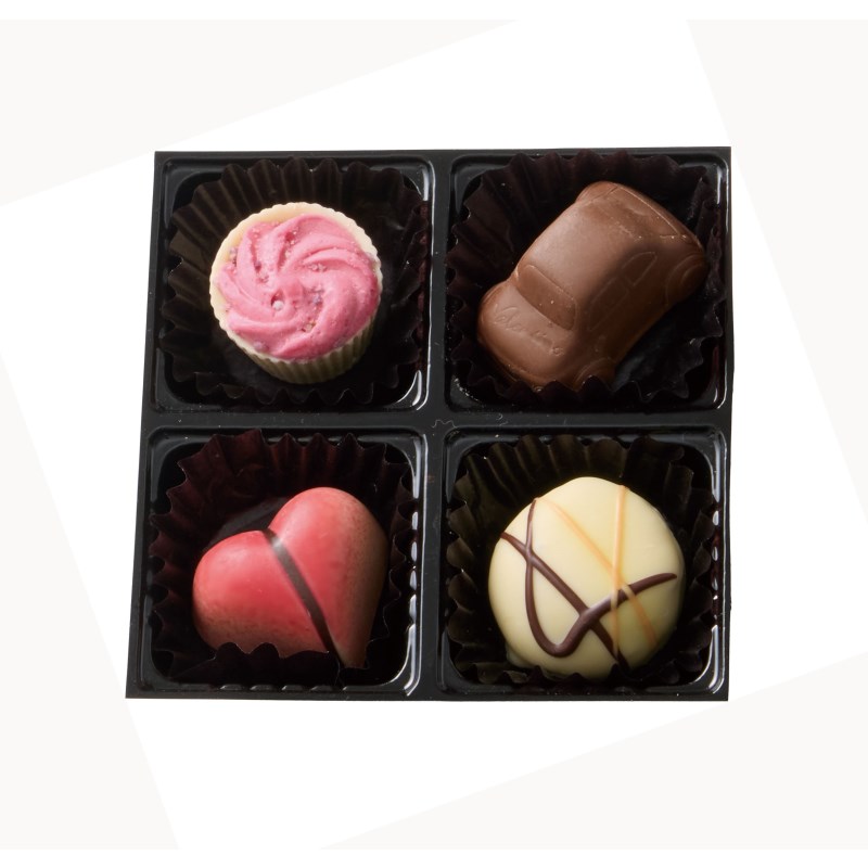 ベーシックなショコラとスイーツフレーバーショコラのアソート4粒入り。