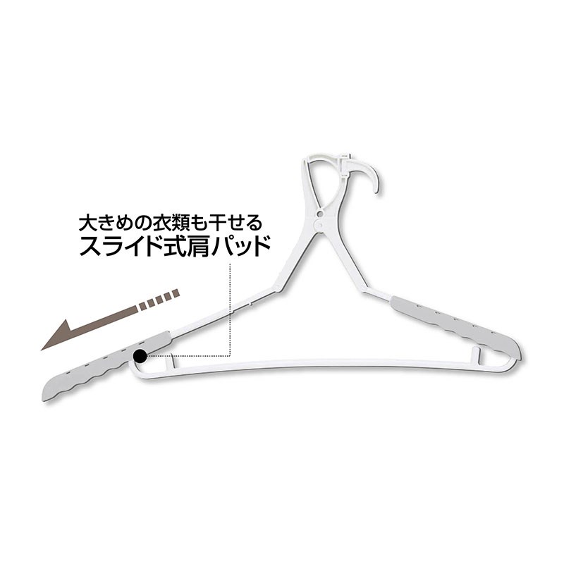 スライドできる肩パッド付きで大き目の衣類も干せます。