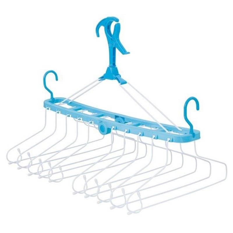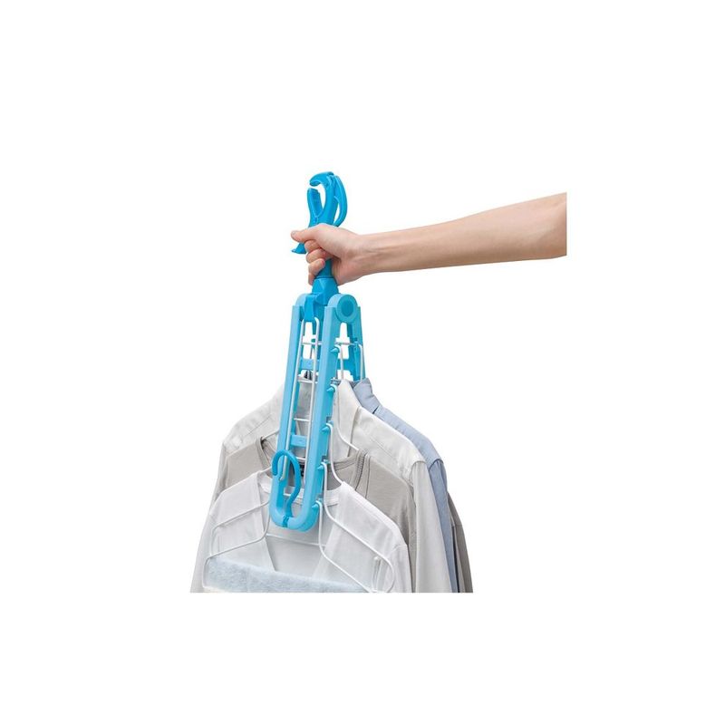サイドフック使用で傾きや、回転を防ぐことができ、干したまま折りたたんで取り込める連式ハンガー
