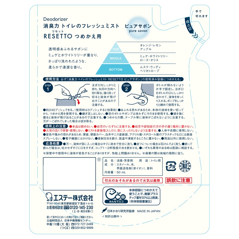 ●トイレ直後やトイレ空間の独特なニオイにご使用いただけます。