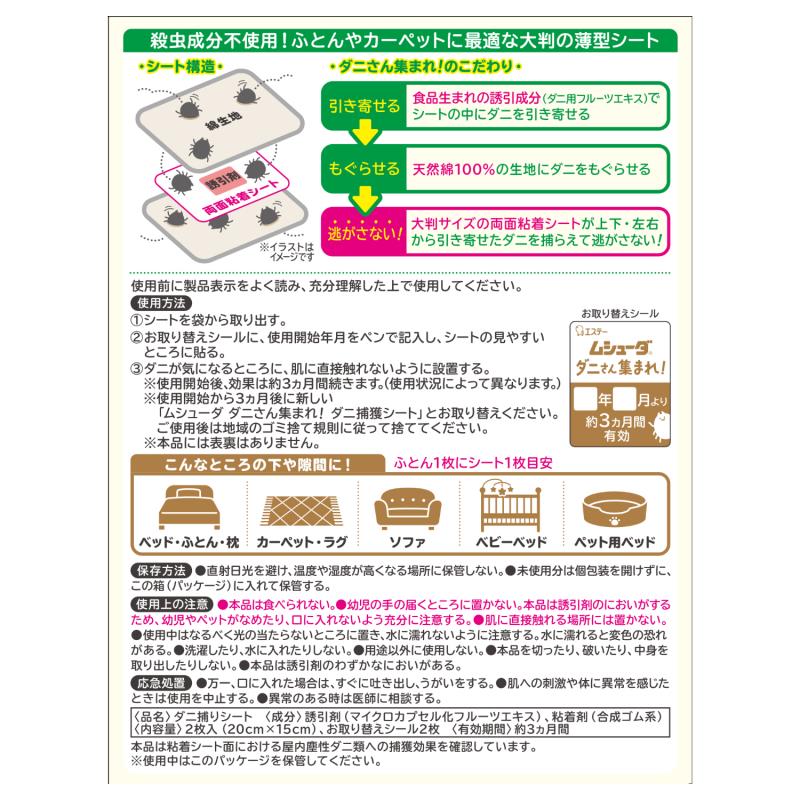 ●殺虫成分不使用。食品成分でダニを誘引します。
