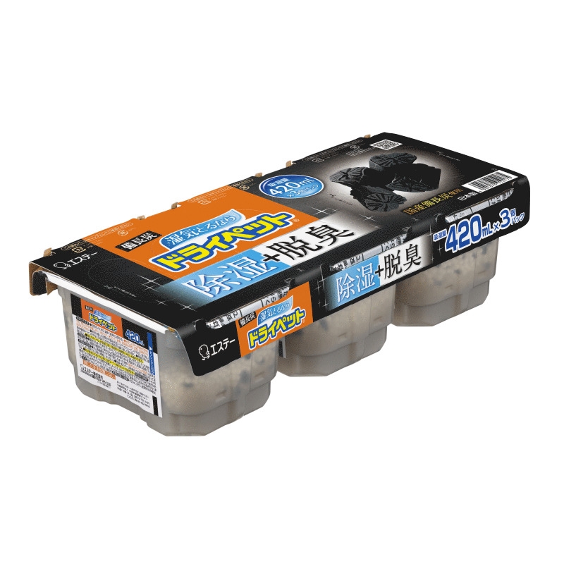 除湿剤に備長炭と活性炭を特殊配合しているので湿気を取りながら気になるニオイを脱臭します