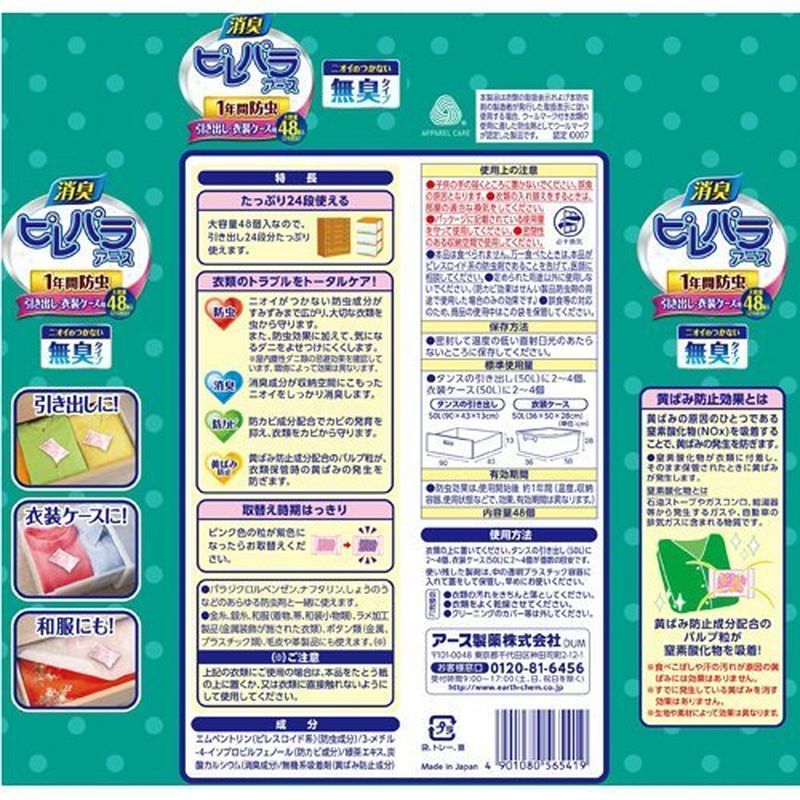 引き出し、衣装ケース用の置くだけ簡単な防虫剤。