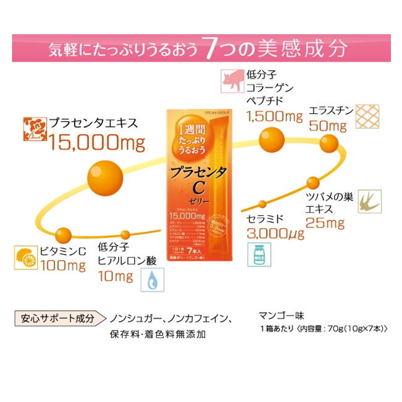 - マンゴー果汁、エリスリトール、豚コラーゲンペプチド、豚プラセンタエキス粉末、黒酢