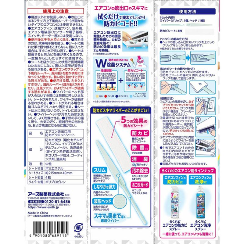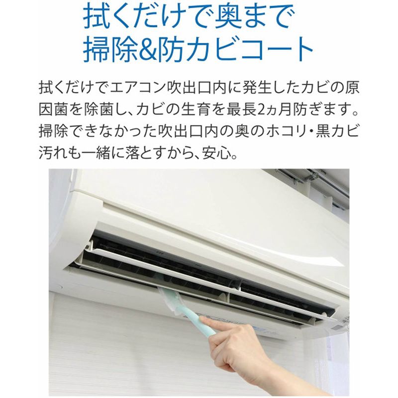 ●エアコン吹出口に発生したカビの原因菌を除菌し、カビの生育を防ぐ。防カビ効果は最長2か月月持続。