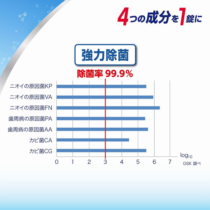 一日中使った入れ歯に繁殖したカビの一種やニオイの原因菌を99.9%※除菌します。