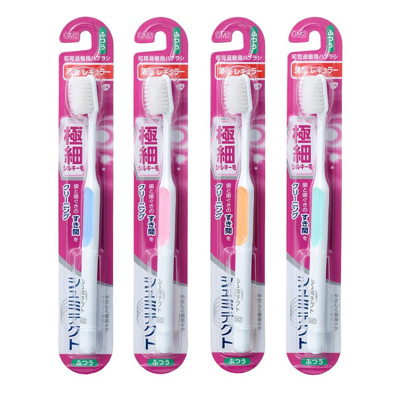 毛先が細く、やわらかい密集した先端極細シルキー毛ブラシが敏感な歯と歯グキの間にしっかり届いてやさしく磨けます。