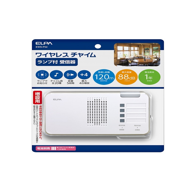●電池寿命:約1年(1日に10回、音量4、ピンポン高音、音のみで使用) ※アルカリ乾電池使用時