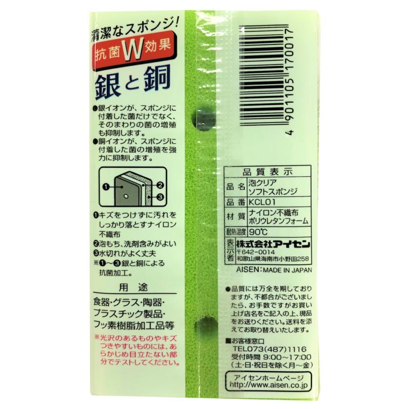 - 銀と銅のW抗菌。泡立ちに優れたソフトスポンジ