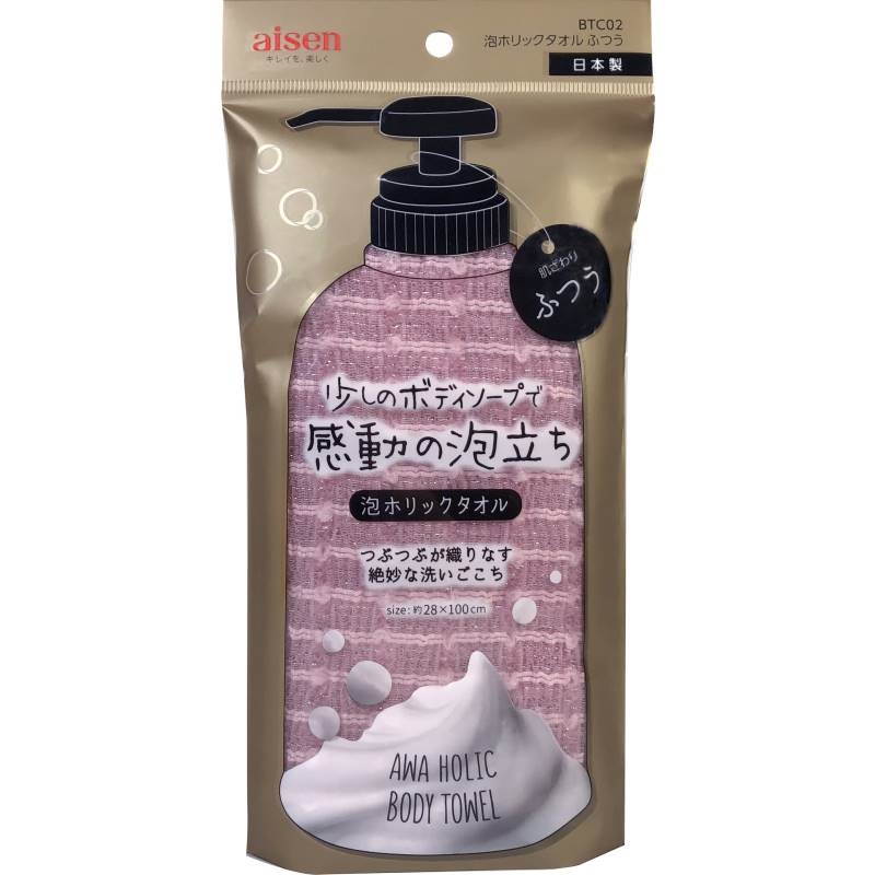 極太ナイロン糸の入れ方を工夫したことにより、ポコポコとした凹凸感を出し、肌触りと見た目のアクセント、泡だちの良さを実現し