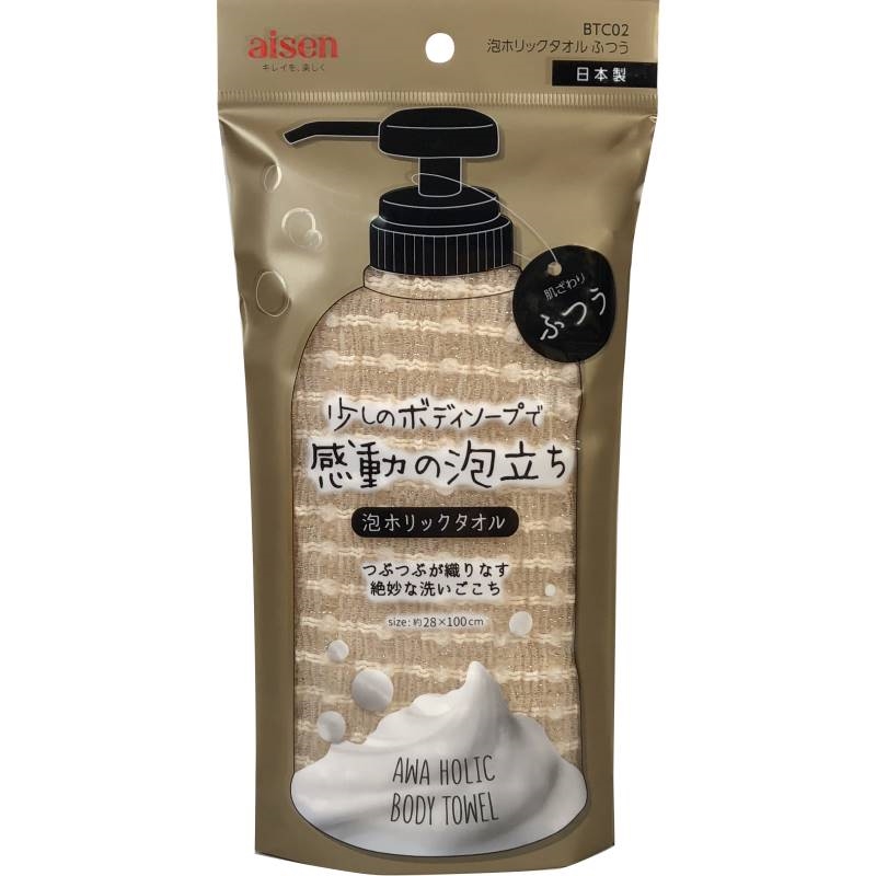 極太ナイロン糸の入れ方を工夫したことにより、ポコポコとした凹凸感を出し、肌触りと見た目のアクセント、泡だちの良さを実現し