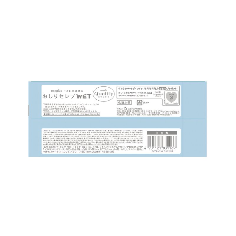 おしりさっぱり、清潔仕上げ。トイレに流せるおしりの洗浄シート。